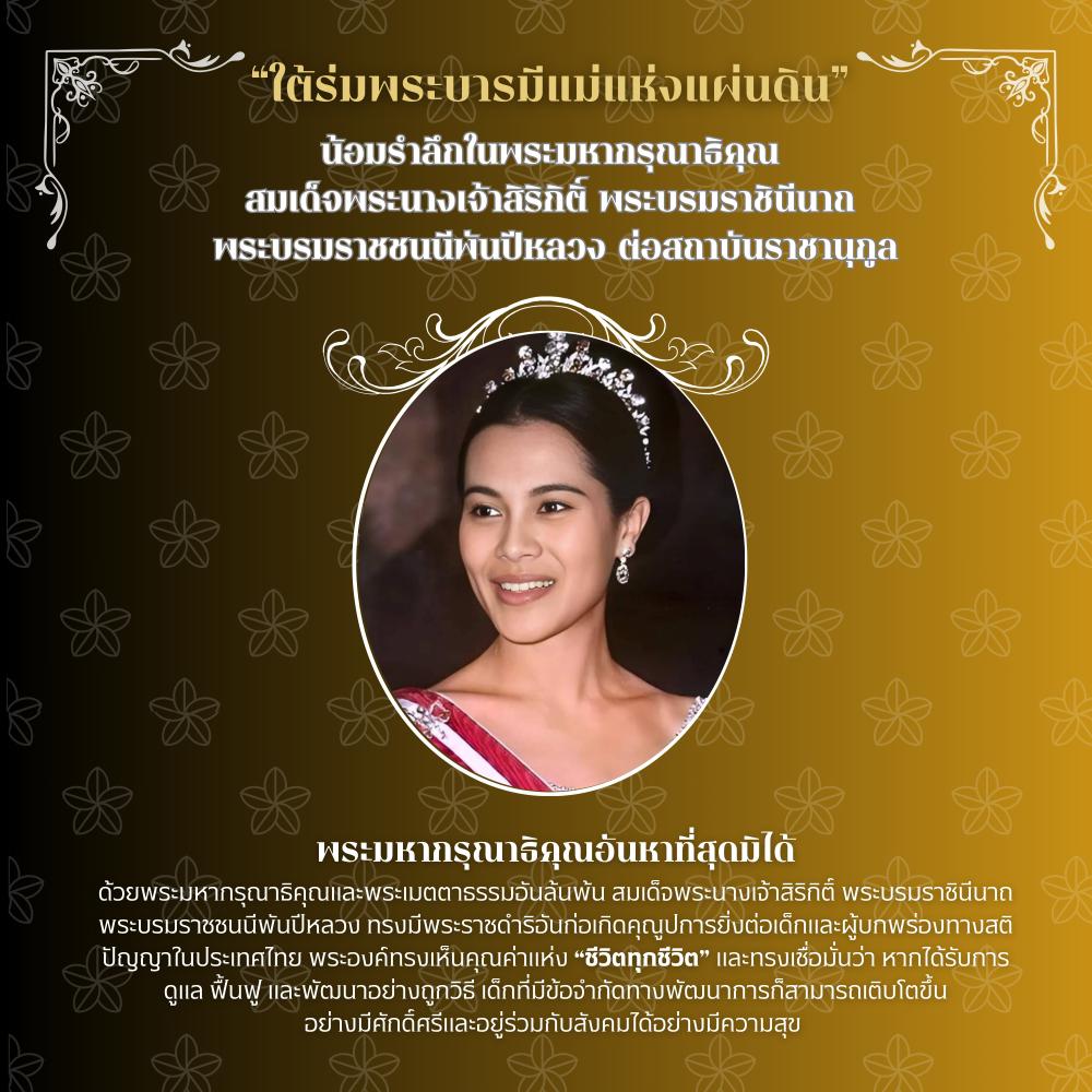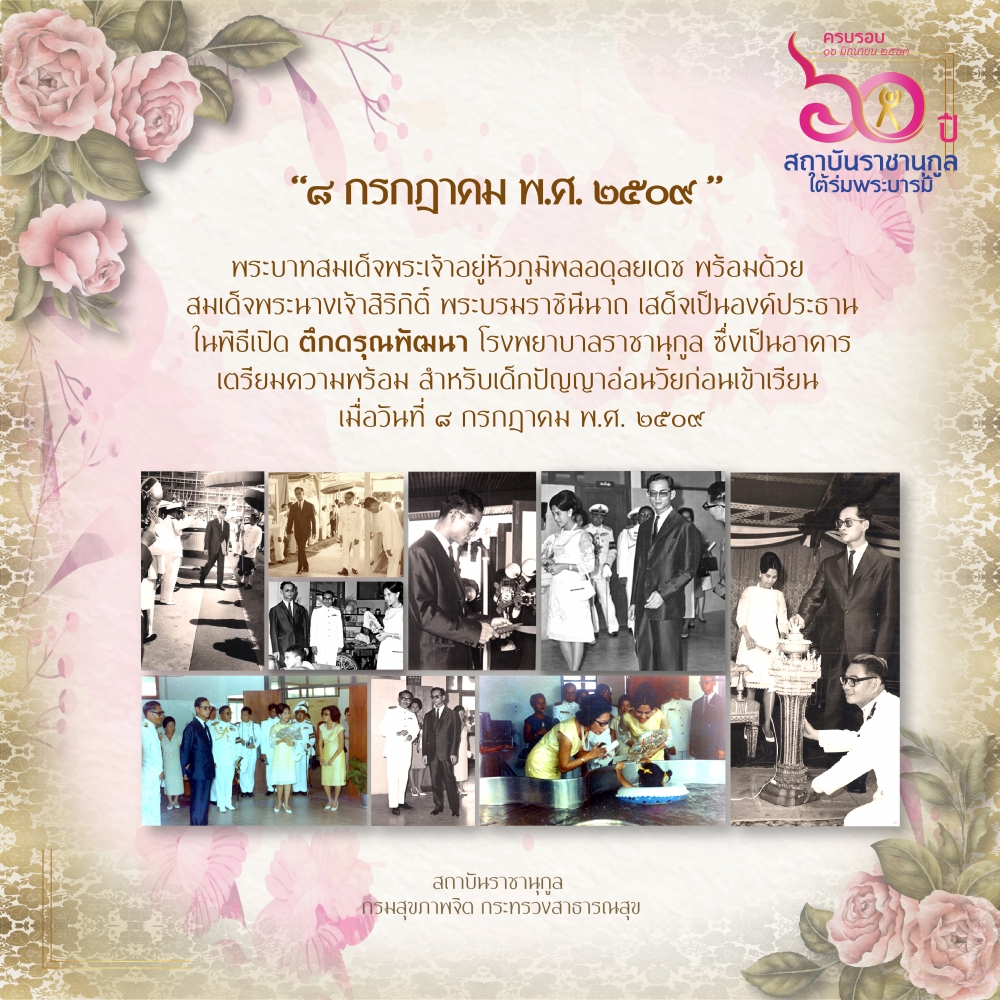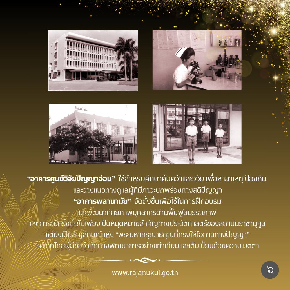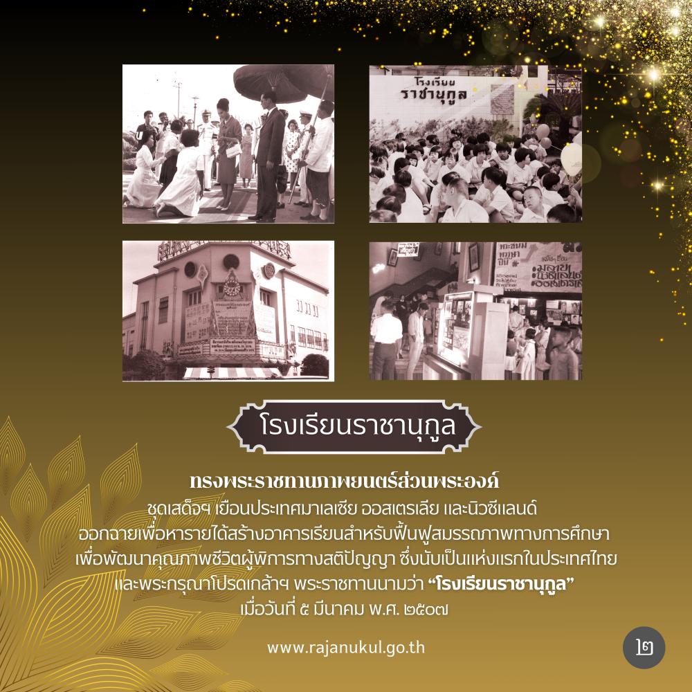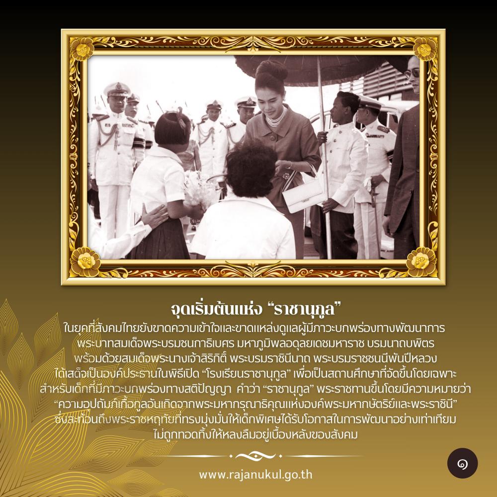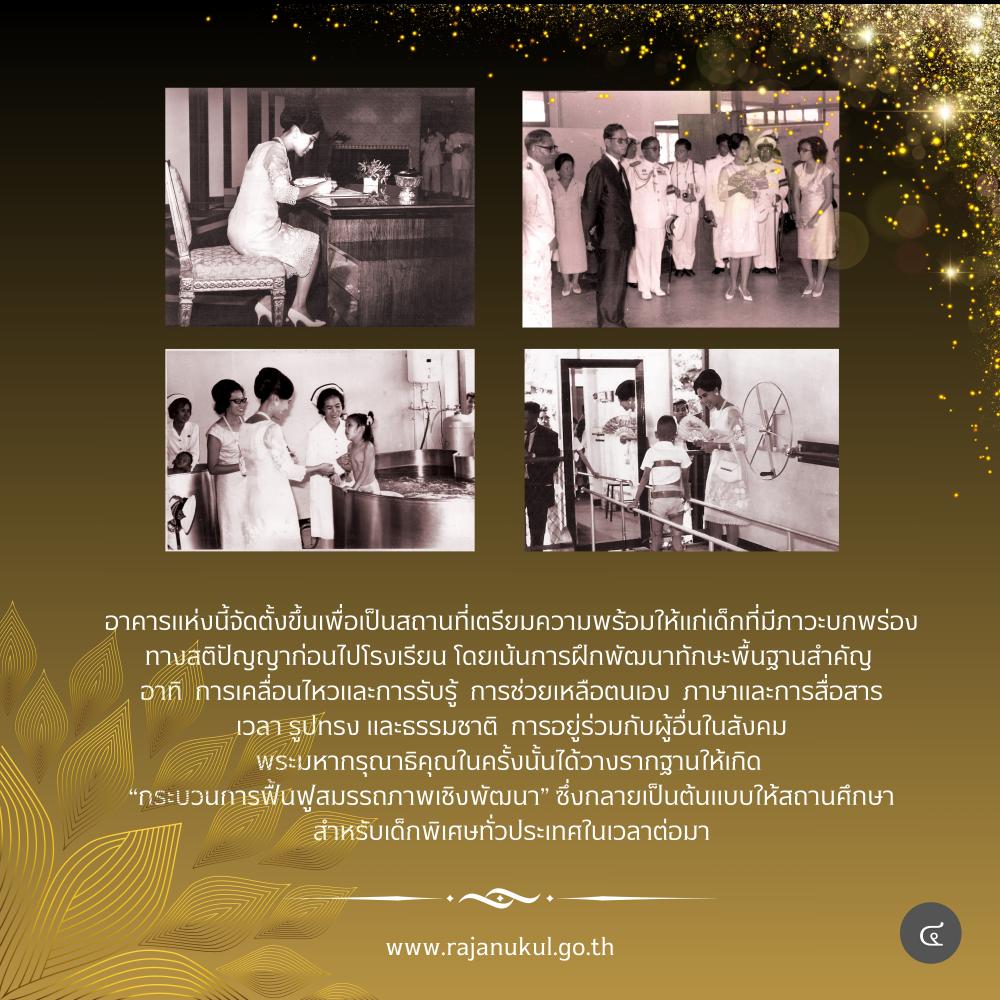 แผ่นดินนี้เป็นแผ่นดินใต้เบื้องพระยุคลบาท ไม่มีที่แห่งหนใด ที่พระบาทสมเด็จพระเจ้าอยู่หัวและสมเด็จพระนางเจ้าสิริกิติ์ พระบรมราชินีนาถ จะเสด็จเยือนไปไม่ถึง ด้วยสายพระเนตรอันยาวไกล ที่พระองค์ทรงห่วงใยราษฎร ห่วงใยพสกนิกรที่ด้อยโอกหาสทางสังคมในทุกๆด้าน โดยเฉพาะอย่างยิ่งพสกนิกรที่ด้อยโอกาสทางสติปัญญา นับเป็นนิมิตหมายอันดียิ่งของผู้ที่มีความบกพร่องทางสติปัญญาในประเทศไทย และเหล่าข้าราชการของสถาบันราชานุกูลที่ได้เกิดมาภายใต้เบื้องพระยุคลบาทแห่งพระมหากษัตริย์ผู้เปี่ยมไปด้วยพระเมตตาพระองค์นี้